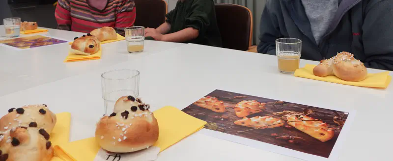 Mit voller Vorfreude zogen wir nach der Mittagspause los und wurden im Altersheim schon von ein paar freundlichen Gesichtern erwartet. Nach ein paar kurzen und kritischen Blicken, tauten die ersten Kinder auf und fingen Gespräche mit den Bewohnenden an. Gemeinsam durften wir Zopfteigtiere gestalten, es wurde geknetet, verziert und angemalt.