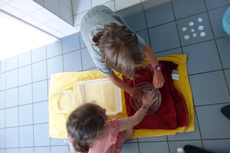 Vor unseren Sommerferien begleitete die Gruppe Fisch das Thema Wasser. Es wurde entdeckt, wie sich Wasserperlen entwickeln, gelernt wie Regenwolken entstehen sowie auch viel im Garten oder auch mal im Badezimmer «gewässerlet».