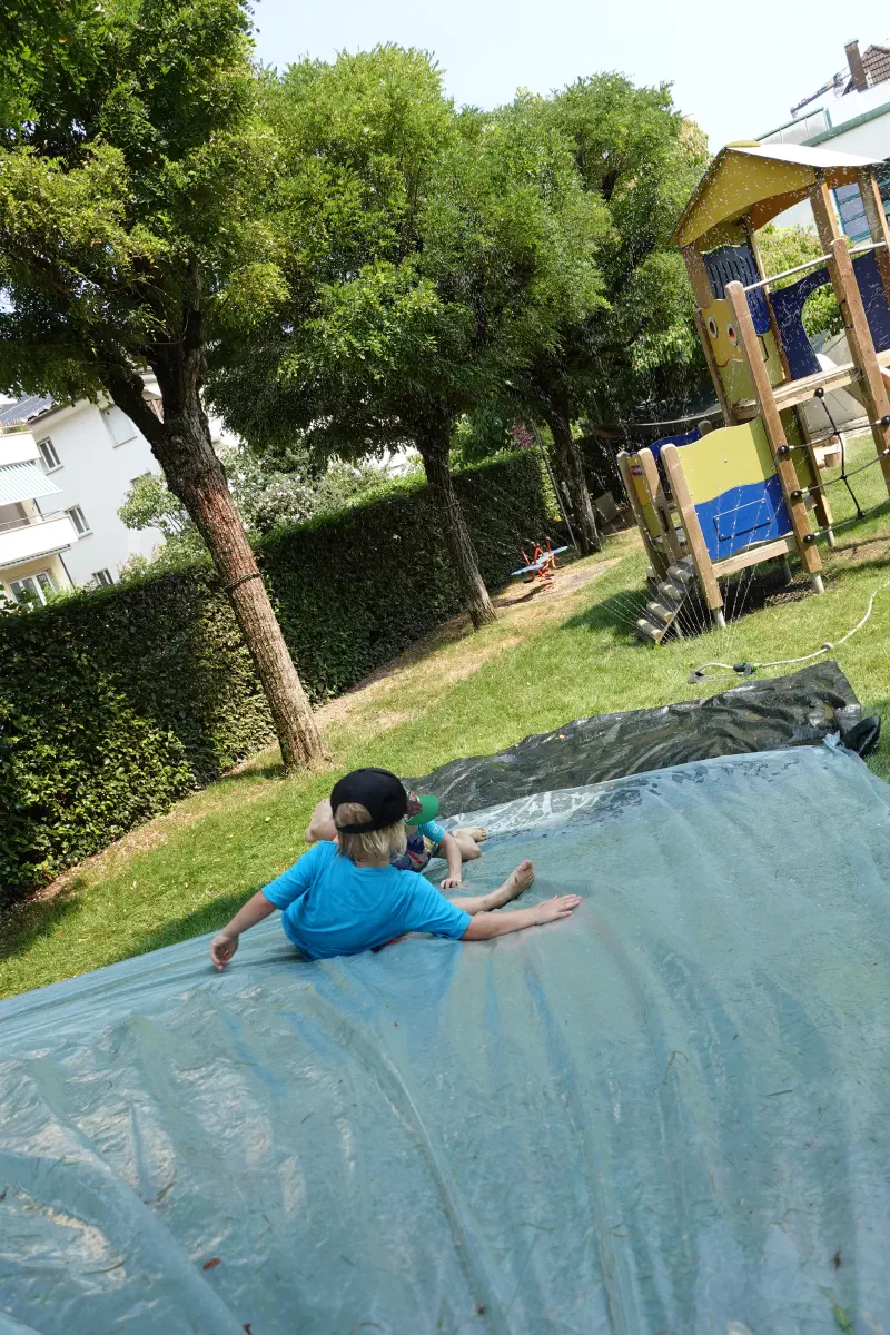 Nach den Sommerferien wurden noch die letzten warmen Tage des Sommers genossen: Der Sandkasten wurde zu einem Matschkasten und unser Hügel im Garten wurde kurzerhand zu einer Wasserrutsche umfunktioniert. Auch im Pool wurden die letzten Runden geschwommen bevor dann Ende August der Herbst sich erblicken liess.